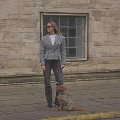 Jakken er lavet af virkelig lækkert materiale, både udvendigt og i polstringen. Den føles behagelig og varm, men pasformen er lidt for løs og ret lige – nærmest som et tæppe, der bare er lagt over hunden, uden at sidde tæt. Vi har derfor valgt and ombytte den til en fra Cloud7.